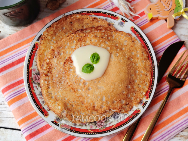 Перевернуть блины и продолжить жарку на умеренном огне. Так поступить со всем тестом. Нужно учесть, что со временем сковорода сильнее прогреется и время на жарку блинов уменьшится, поэтому огонь постепенно нужно уменьшать, чтобы блинчики не пригорели.