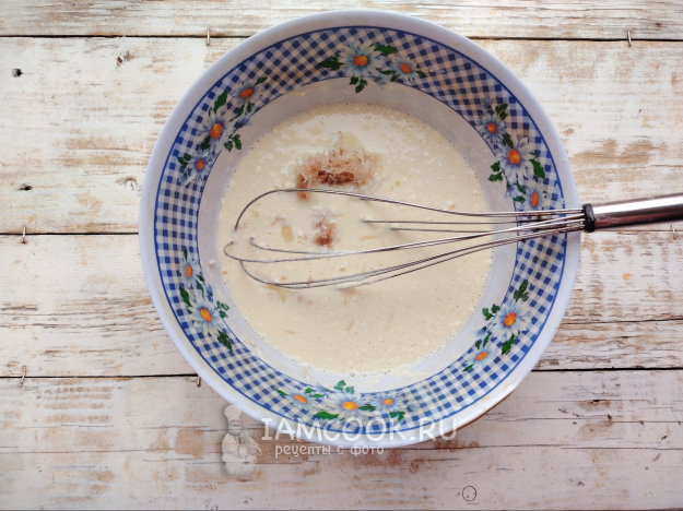 Перемешать массу, чтобы комочки муки полностью разошлись.