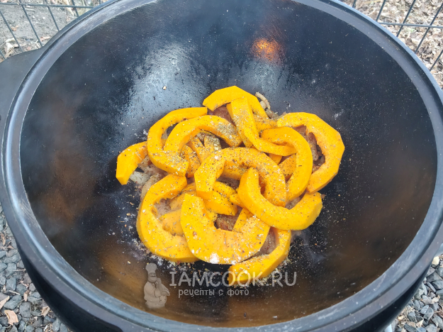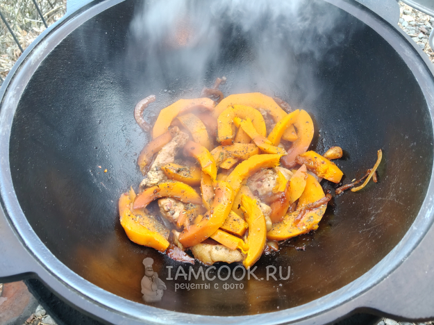 Тыква с мясом в казане на костре удалась!