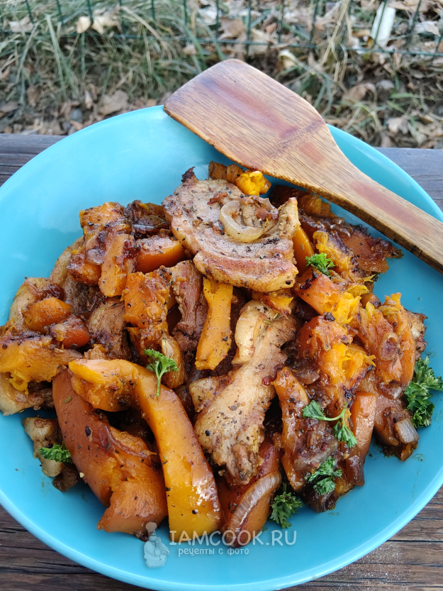 Тыкву с мясом в казане на костре я готовила из таких ингредиентов.