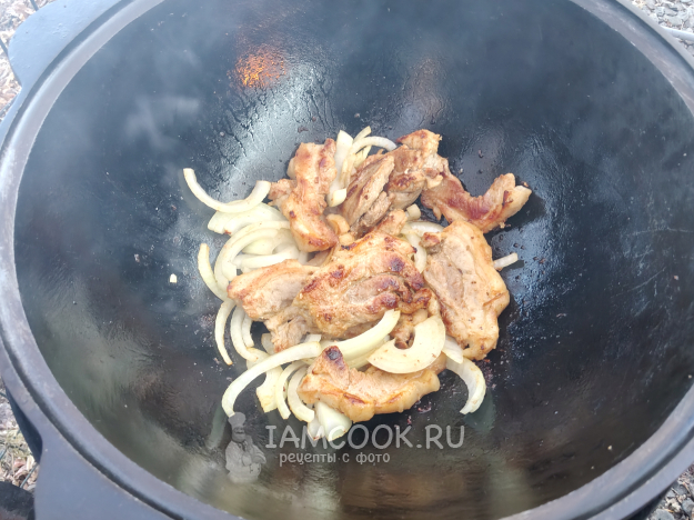 Налить на дно немного воды, закрыть казан крышкой.
