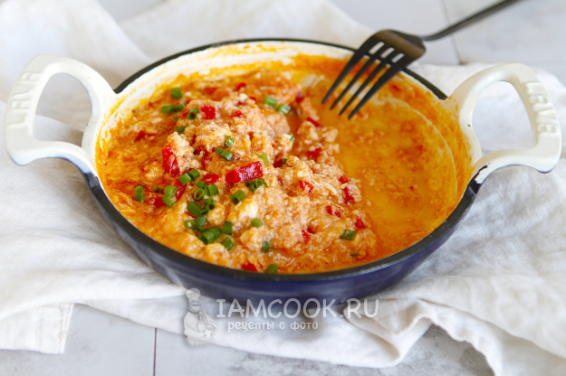 Готовьте менемен еще примерно 3-4 минуты. Яйца не должны сильно перевариться.