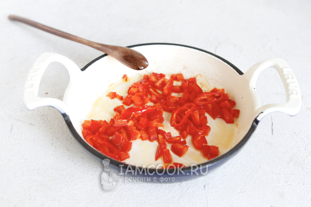 На растительном масле обжарьте перцы до мягкости, примерно 3 минуты.