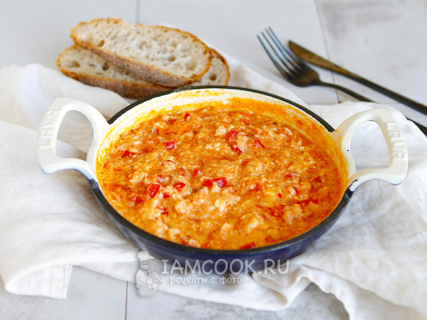 Менемен с сыром готов. Подавайте его с кусочком хлеба, сверху можно присыпать свежей зеленью.