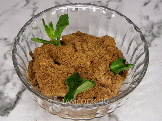 Присыпаем мороженое печеньем, кладём листочки мяты.