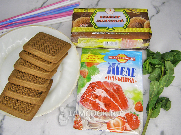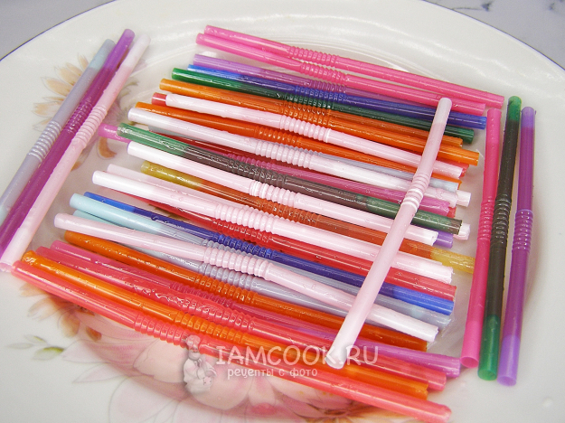 Соберём продукты для приготовления «Червяков» из желе. Вам также понадобятся трубочки для коктейля, примерно 30 штук, и шприц без иглы.