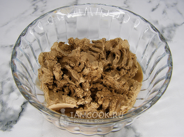 Непосредственно перед подачей к столу раскладываем мороженое по тарелочкам. Разравнивать и наводить красоту не нужно, достаточно просто немного размять его вилкой или ложкой.