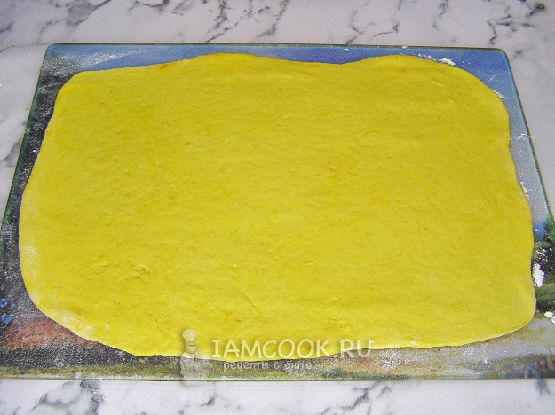 Посыпаем тесто смесью сахара, корицы и цедры.
