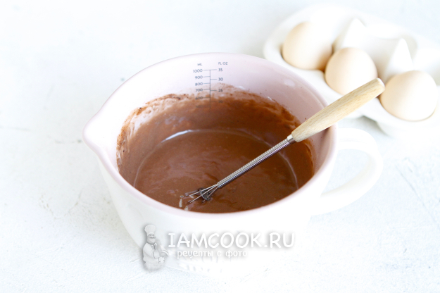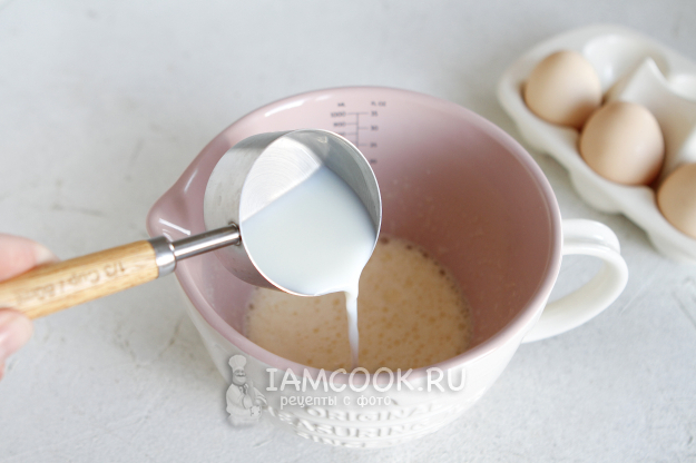 Растопите сливочное масло и добавьте его к яичной смеси вместе с молоком.
