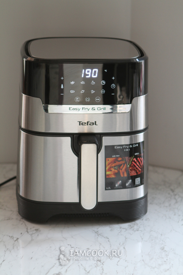 Выпекайте при 190 градусах 20 минут, режим - "Выпечка". Температура и время приготовления могут меняться в зависимости от мощности вашего аэрогриля.