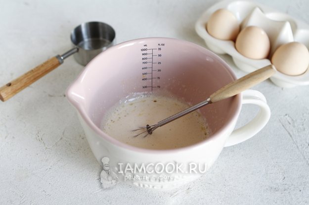 Тщательно перемешайте все ингредиенты. Консистенция у теста должна быть однородной, без комочков и не плотной.