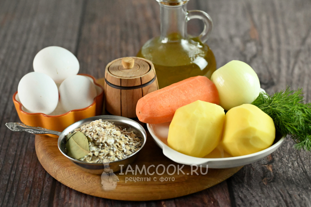 Подготовьте все необходимые продукты для варки супа с «Геркулесом» без мяса.