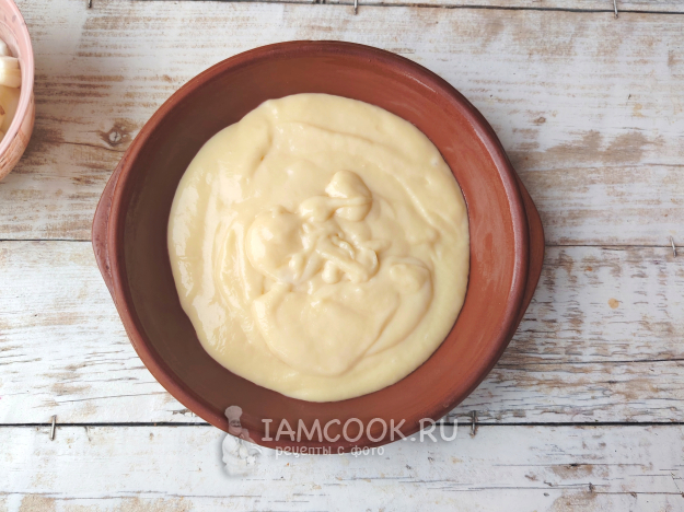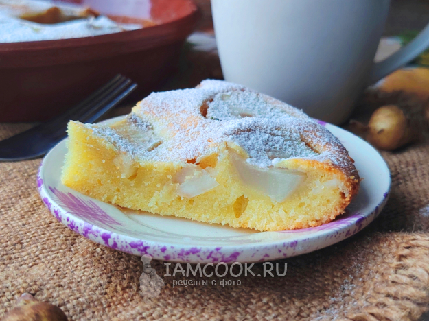 Сверху выложить кусочки топинамбура, немного вдавить их в тесто. Отправить форму с заготовкой пирога в разогретую до 180 градусов духовку на 30 минут. Готовность шарлотки с топинамбуром можно проверить при помощи зубочистки, на выходе она должна быть сухой.