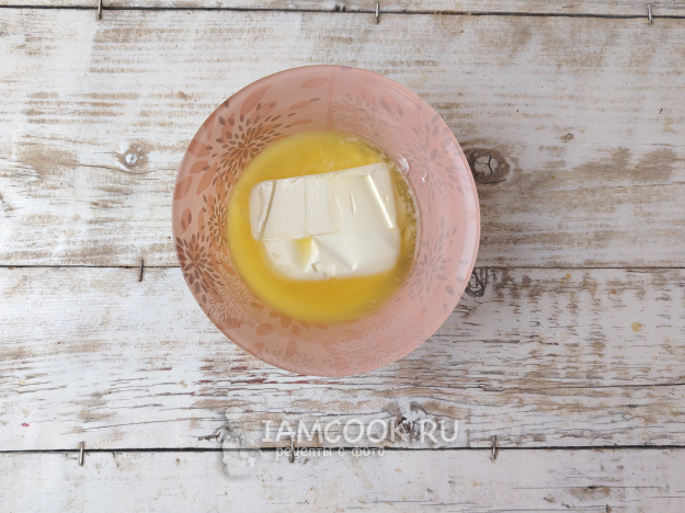 Масло сливочное растопить в микроволновой печи, можно только размягчить, и дать немного остыть.