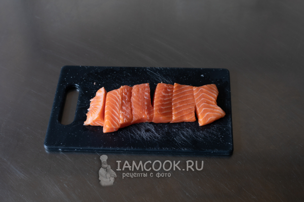 Нарежем рыбу на кусочки "на один укус".