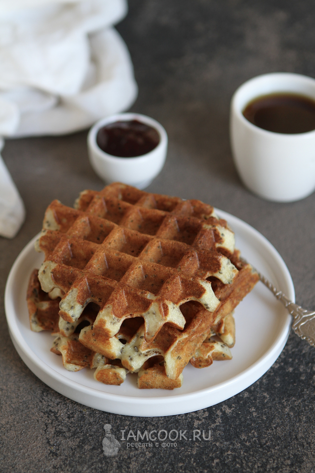 Мягкие внутри и с хрустящей корочкой вафли с семенами чиа готовы.