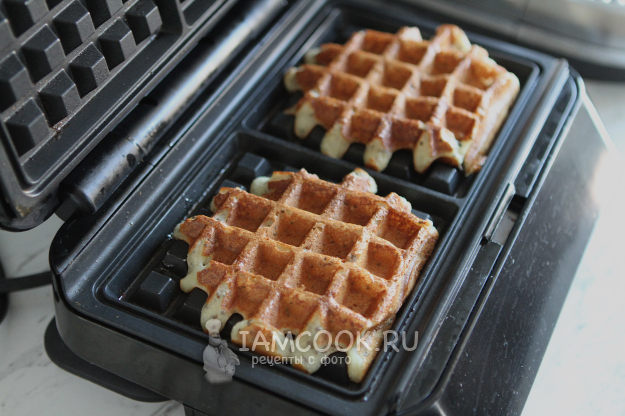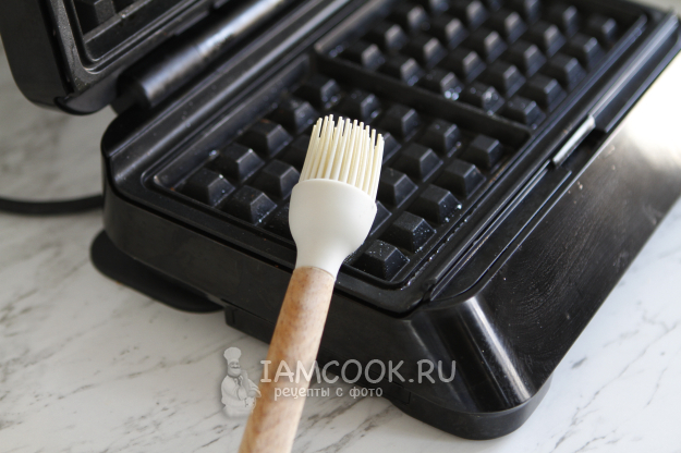 Выложите по 1.5-2 ст. л. теста. Закройте крышку вафельницы.