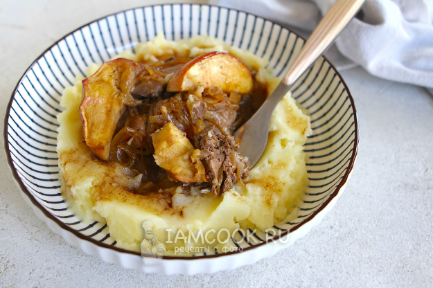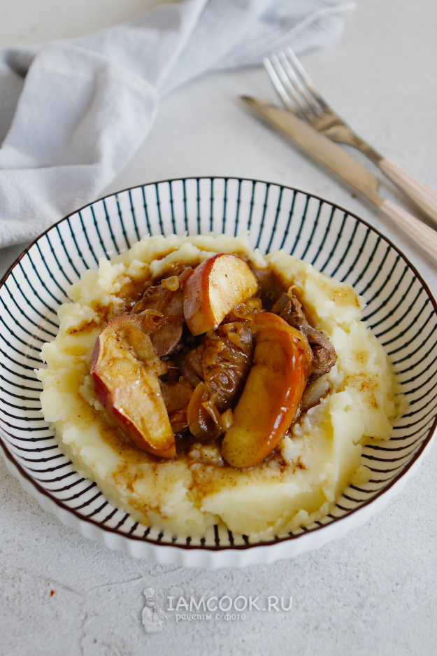 Подать блюдо можно самостоятельно или с любым гарниром. К печени с яблоками отлично подойдет картофельное пюре или пропаренный рис.