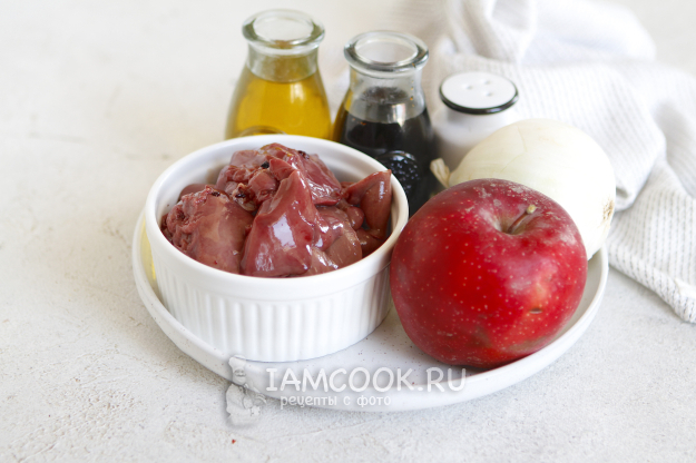 Продукты для запекания куриной печени с яблоками в духовке - перед вами.