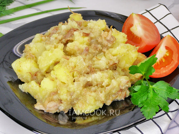 Подавать вареную картошку с тушёнкой лучше всего сразу после приготовления, пока всё тёплое). Приятного аппетита!