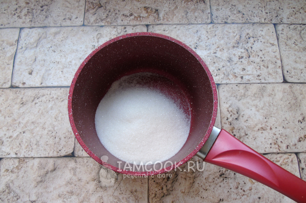 Выложите в кастрюлю с сахаром, растворенным в воде.