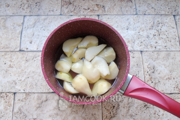 Груши помойте, очистите, удалите сердцевину и нарежьте произвольно.