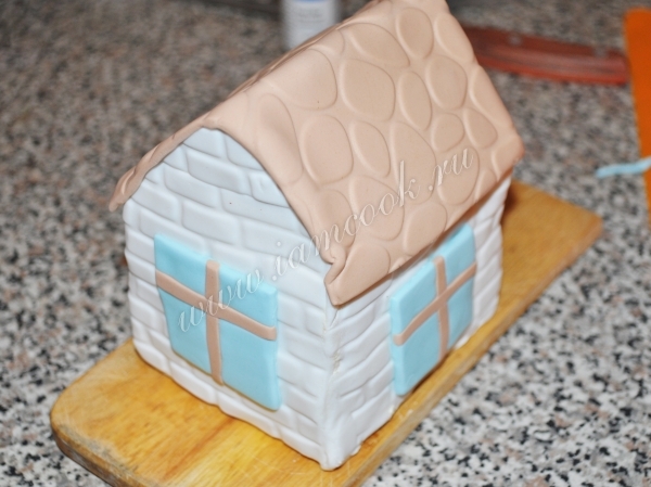 Так же делаем и окна. Домик готов, ставим его в холод и займёмся тортом.