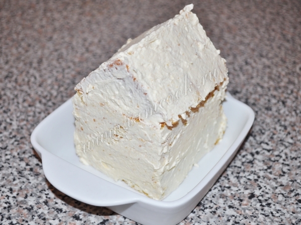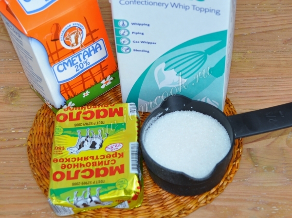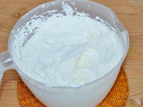 Затем в сметану с сахаром подмешать сливки и масло. Получим нежнейший крем со сметанной кислинкой.