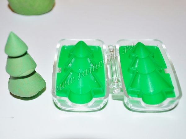 Из зелёной мастики с помощью формочки сделаем ёлку она ещё мягкая и поставим её сушить на 2 дня.