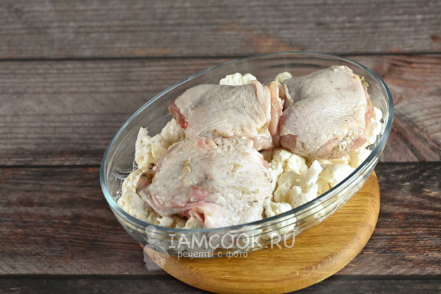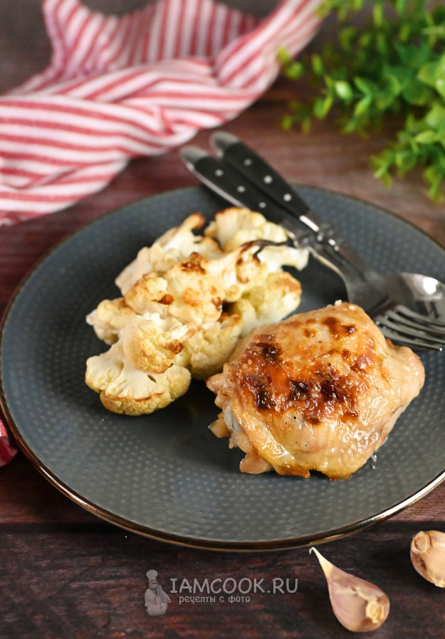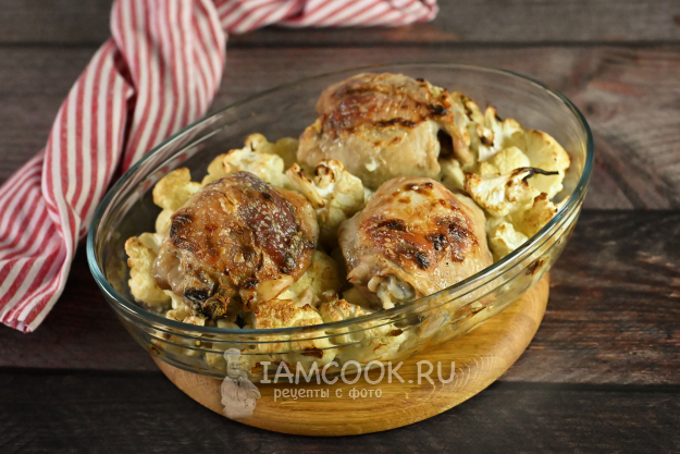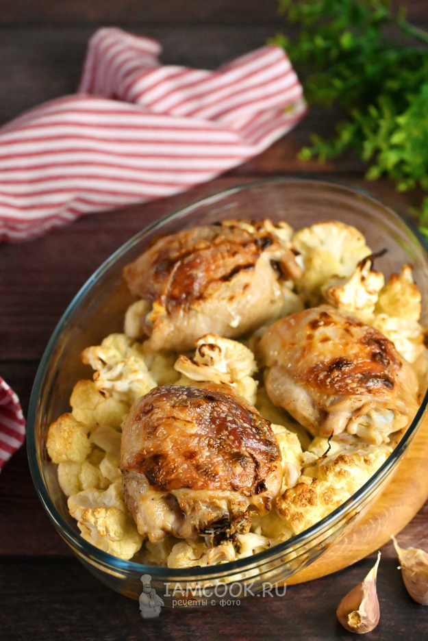 Куриные бедра с цветной капустой в духовке, рецепт с фото