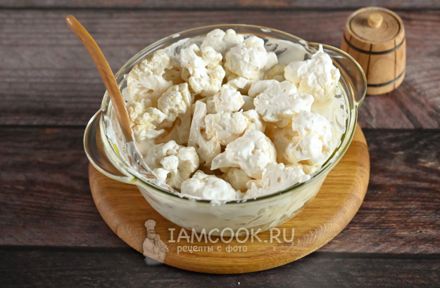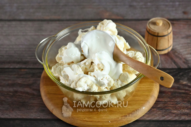 Перемешайте цветную капусту с солью и сметаной.