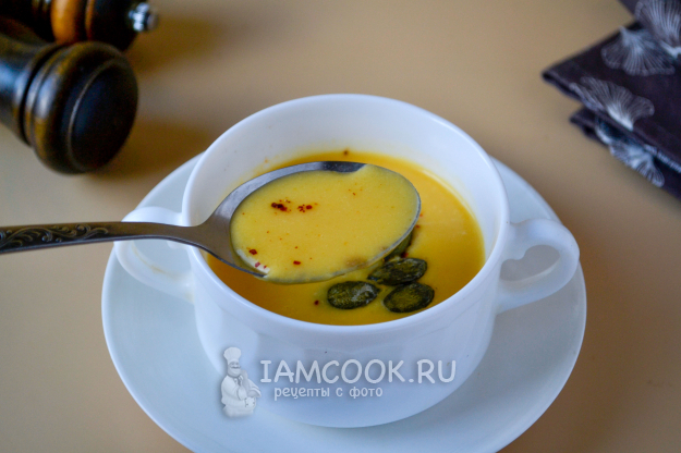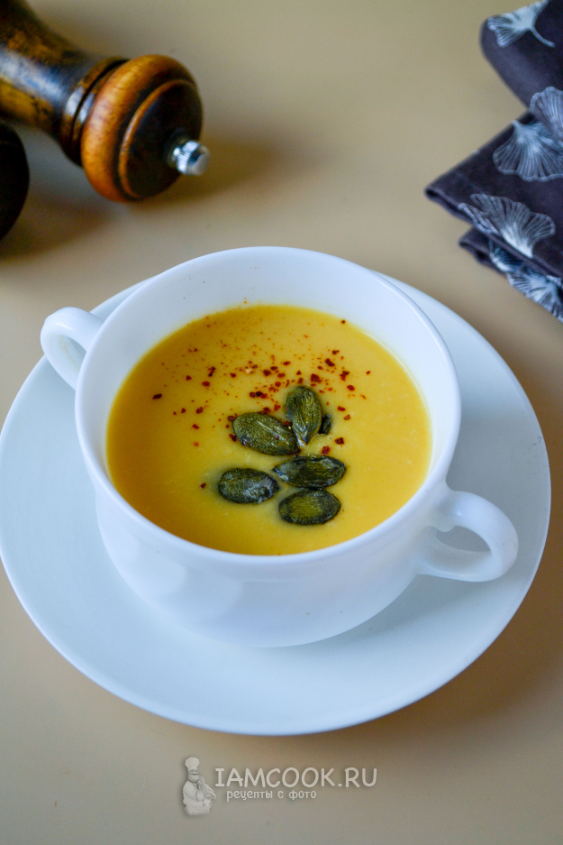 Снимите кастрюлю с огня и погружным блендером пюрируйте до однородной консистенции. Крем-суп из тыквы и цветной капусты готов.