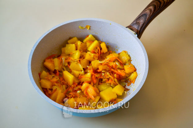 Помешивая, на среднем огне обжарьте овощи 6-7 минут.