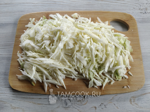 Капусту мелко нашинковать.