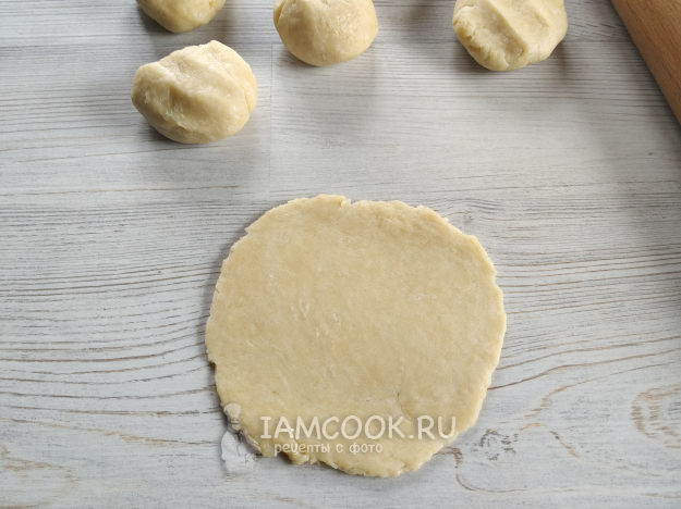 Тесто разделить на 6 частей. Раскатать в лепешку.