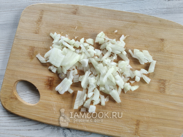 Мелко нарезать лук.