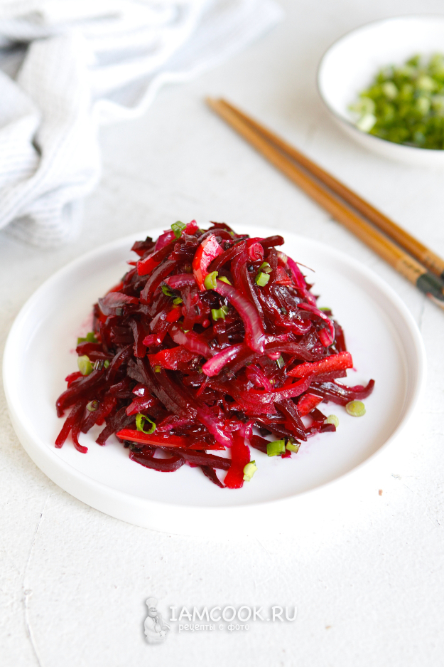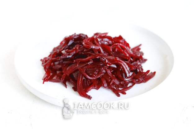 Свеклу остудите, почистите и нарежьте тонкой соломкой.