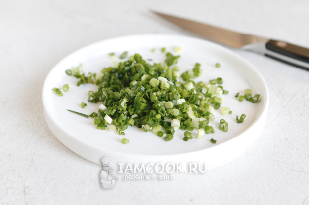 Лук зеленый вымойте, хорошо обсушите бумажным полотенцем и мелко нарежьте.