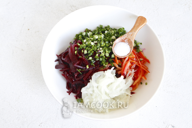 Соедините все ингредиенты. Слегка посолите и перемешайте.