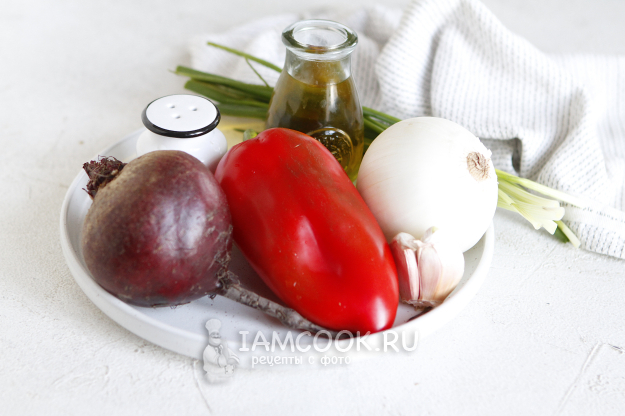 Продукты для приготовления свекольного салата с болгарским перцем - перед вами.