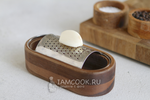 Чеснок натрите на мелкой терке или измельчите ножом.