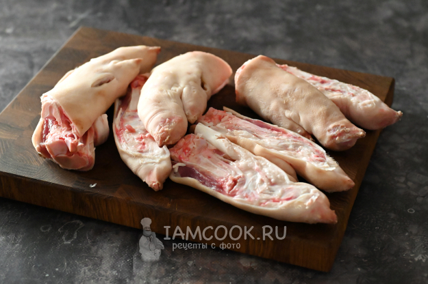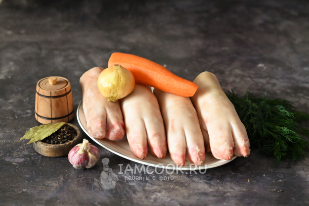 Соберите все необходимые продукты, и я вам поведаю, как приготовить вареные свиные ножки с чесноком.