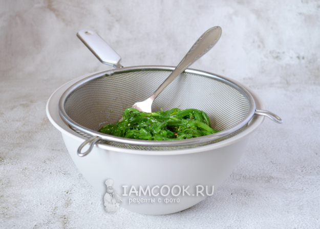 Салат чука откинуть на сито и дать стечь маслу и лишней жидкости.