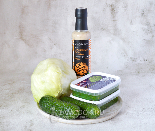 Соберите необходимые ингредиенты для приготовления салата с чукой и айсбергом.