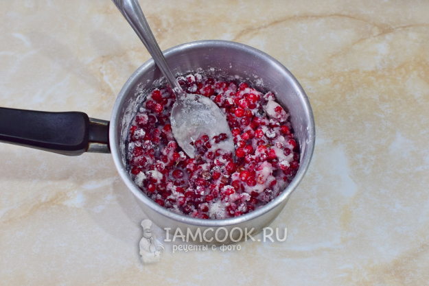 Если ягоды еще не разморожены, то можно добавить чуть воды. Все смешайте и поставьте на огонь.