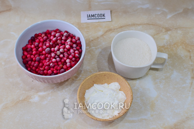 Чтобы приготовить начинку для пирожков из брусники, соберите необходимые ингредиенты по списку. Бруснику хорошо брать замороженную. После разморозки ягоды дают много сока и пропадает легкая брусничная горчинка.