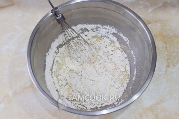 Затем добавьте яйцо и влейте растительное масло. Смешайте.