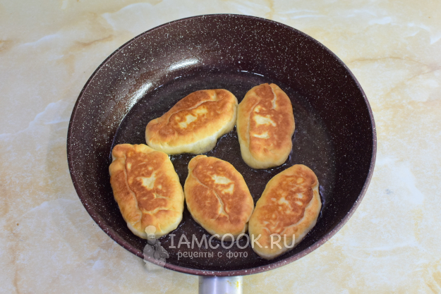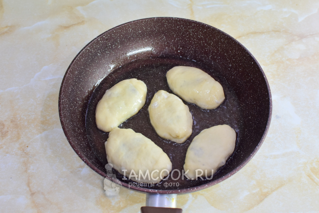 Налепите и обжарьте так все пирожки с брусникой из дрожжевого теста на сковороде, на малом огне со всех сторон до золотистого цвета.