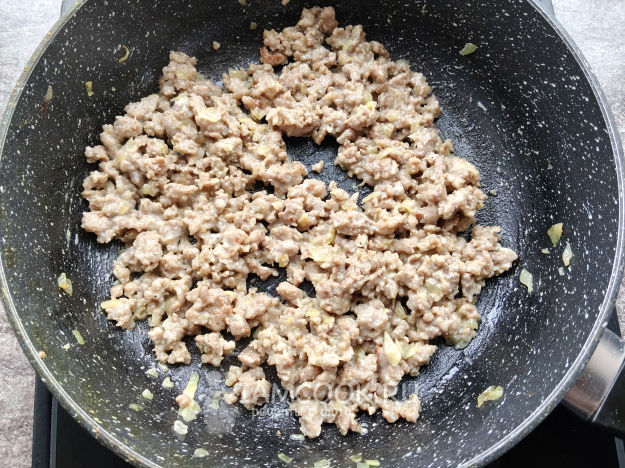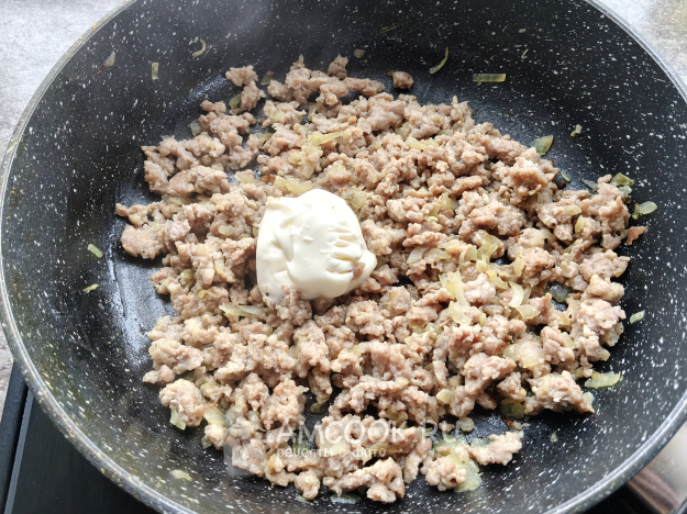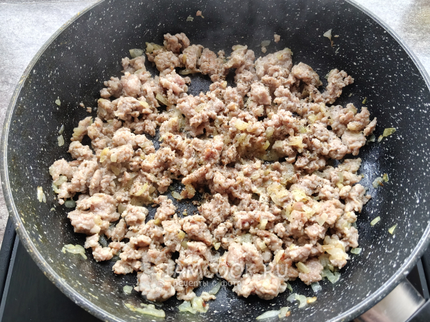 Добавить к луку фарш.