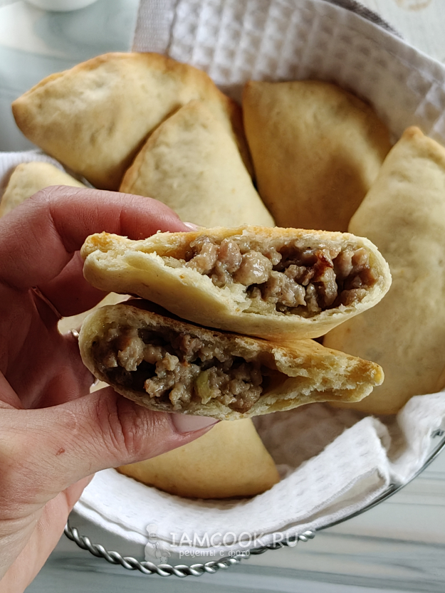 Возьмите необходимые ингредиенты, чтобы приготовить сочни (сочники) с мясом.